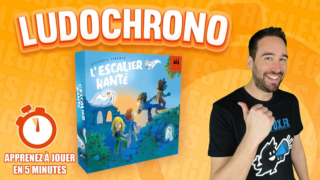 Un dé, quatre petits personnages colorés, un escalier qui monte vers un vieux fantôme grognon… et soudain, tout le monde se retrouve déguisé en fantôme blanc identique ! L’escalier hanté est un jeu de mémoire malin et hilarant où chaque joueur tente de faire grimper son pion jusqu’au sommet, mais où les échanges de fantômes sèment une pagaille mémorable. On croit savoir où est notre pion, on avance avec assurance… et on découvre qu’on vient de faire gagner son adversaire. Fous rires garantis, aussi bien pour les enfants de 4 ans que pour les adultes qui se font piéger comme des débutants.
